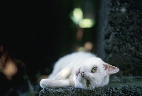 いつ行っても、狭い岩場から厳めしい視線を投げ付けるこのねこ。